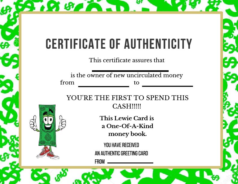 At its core, Lewie Cards is more than just money in a card — it’s a keepsake. Each greeting card contains $10 or $20 of sequential, uncirculated bills, complete with a Certificate of Authenticity signed by Lew himself. That means the recipient isn’t just getting cash — they’re holding the first chance to spend a brand-new note, a memory wrapped inside a card that will never be forgotten.